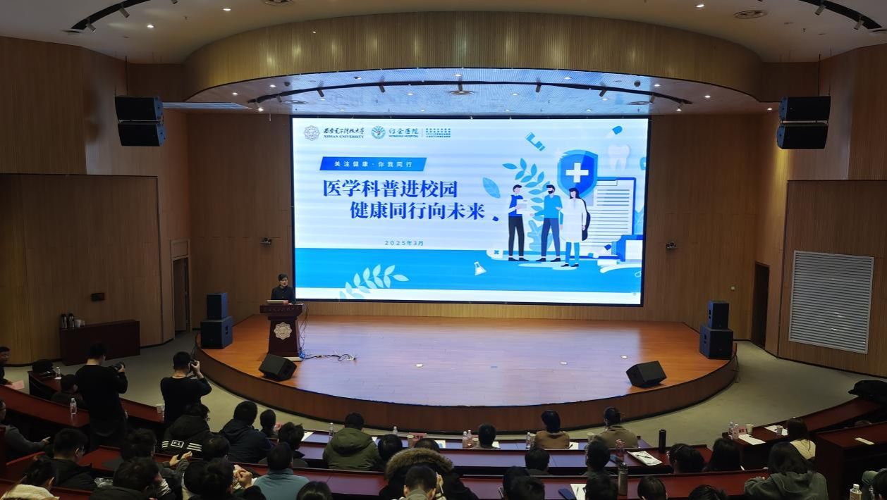 (通讯员 边晟世)为提升师生健康意识,普及医学知识,助力校园健康文化建设。3月7日下午,由校工会、西安市红会医院主办,永利集团88304承办的“医学科普进校园 健康同行向未来”活动如期开展。此次活动特邀西安市红会医院权威专家团队,为师生们呈上一场兼具科学性与实用性、生动且有趣的健康知识盛宴。活动由永利集团88304党委书记杨生海主持,学校百余名师生代表参加此次活动。