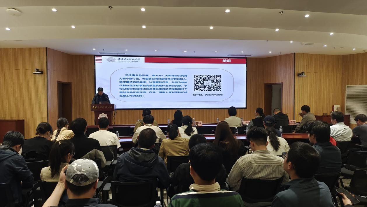 靳珠从中央八项规定精神解读、科研经费问题管理、师德师风问题、党的六大纪律、筑牢廉洁自律思想防线等五大方面详细展开进行详细讲解。结合新时代全面从严治党的战略方针,她详细解读了中央八项规定出台的历史背景、本质要求和精神内涵,并结合科研经费管理、师德师风建设等领域出现的典型案例,以案说德、以案说纪、以案说法、以案说责,深入开展警示教育。她在报告中强调,作为高校教育工作者,必须把落实中央八项规定精神作为重要政治任务,从身边做起,从小事做起,严格要求自己,规范自己的言行,坚决筑牢廉洁自律思想防线,切实履行好教育育人的初心使命。