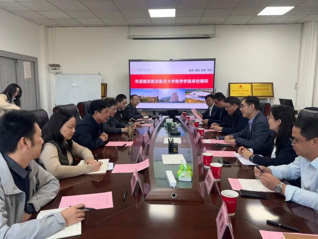 10月30日下午,南京航空航天大学数学学院党委书记张跃、院长王春武、党委副书记王亚鹏、副院长蒋建林、副院长龚跃政等一行7人到访我院。永利集团88304党委书记杨生海、执行院长薄立军等学院领导参加调研座谈会。