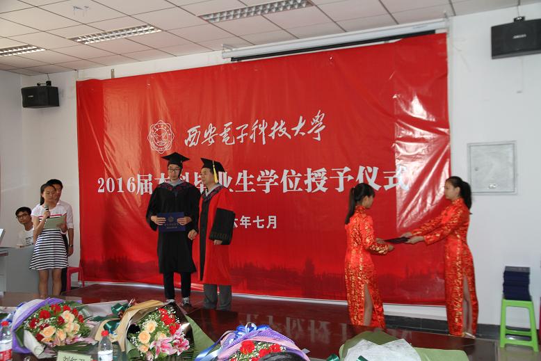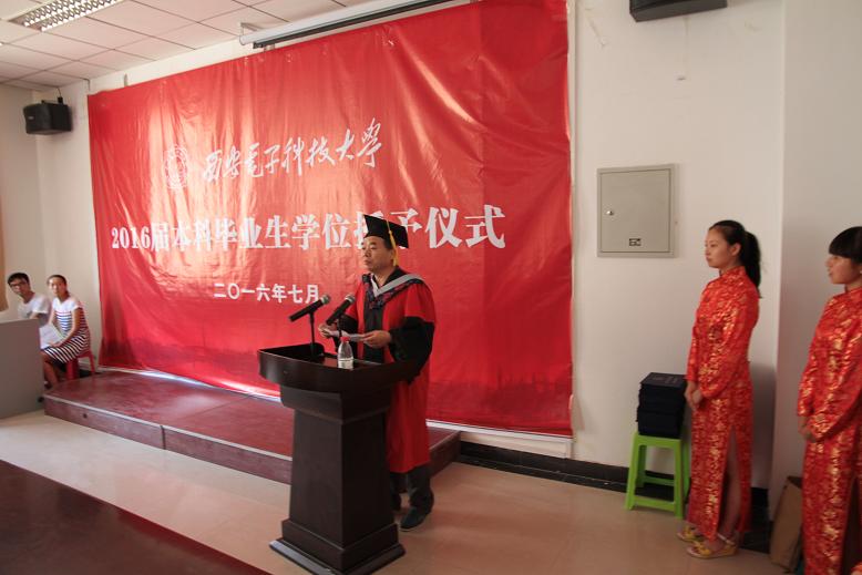 随后毕业生代表张耀琦同学发言表达了对母校的感激与不舍,并为母校、老师和同学送上了深深的祝福。之后进行学位授予仪式,由永利集团88304院长刘三阳教授为每一位毕业生颁发学位证,进行拨穗授位,并与学子合影留念。
