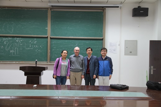 报告开始之前,赵宪钟教授向大家介绍了John C. Meakin教授在代数学研究领域做出的重要贡献。John C. Meakin教授的报告从一些基本的代数学概念入手,重点就一类重要半群:矩阵半群研究的代数意义,国际上在该领域已取得的研究成果,以及目前待解决的公开问题等几个方面展开探讨。报告期间,我院青年教师杨丹丹老师就相关公开问题的研究意义及方案,以及今后的合作方向与John Meakin教授进行了讨论。John C. Meakin教授思路清晰新颖,语言诙谐幽默,报告从提出问题开始就十分引人入胜,生动有趣又科学严谨,得到了大家的一致好评。报告最后,赵宪钟教授就John C. Meakin教授的报告内容做了精彩的总结,并对教授为大家的精心讲解表示真诚的感谢,报告圆满结束。