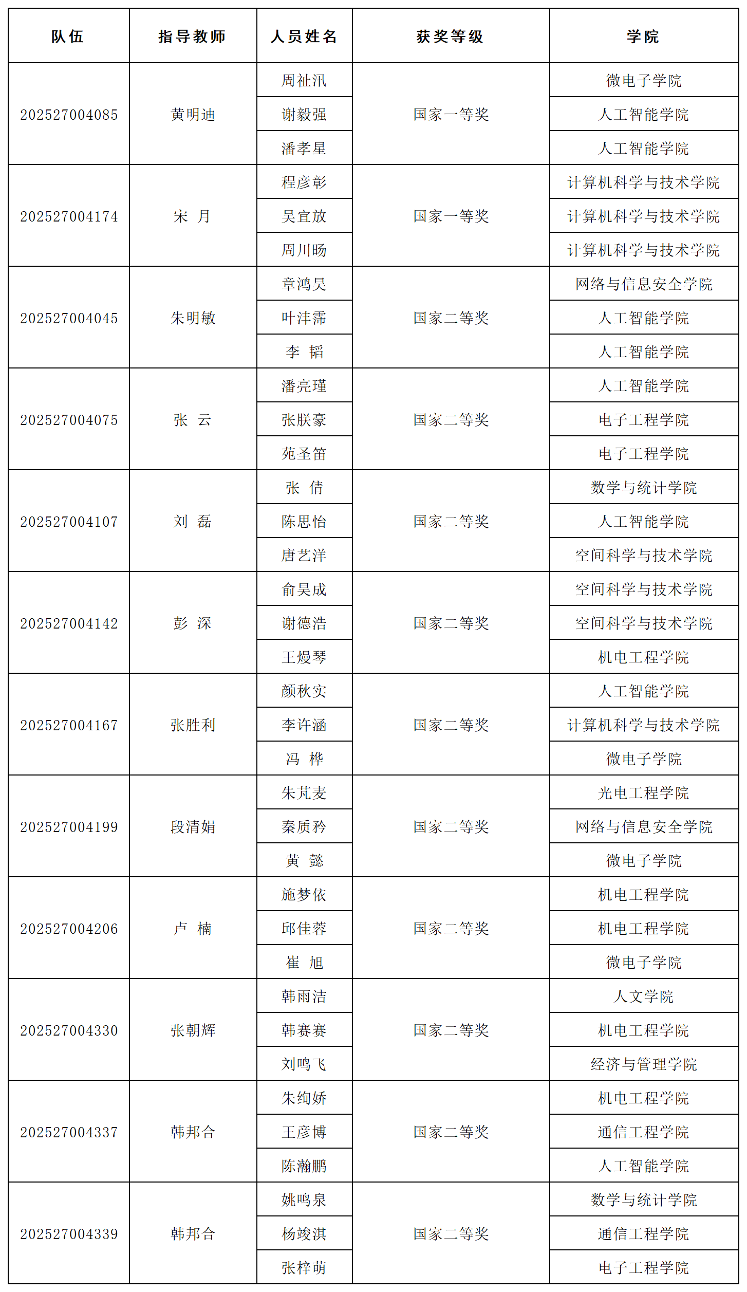 学校获奖队伍名单