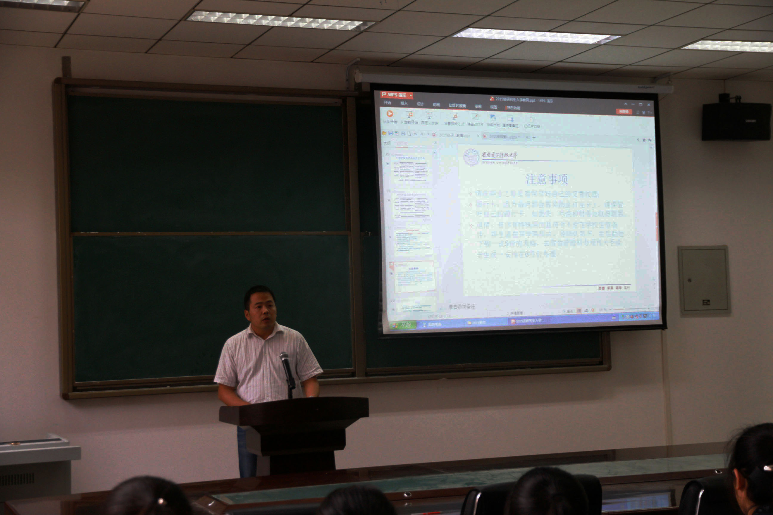 随后院长助理李小南对研究生申请学位研究成果的基本要求作了详细说明,重点介绍了我院上半年新制定的《关于严把硕士学位论文质量关的若干规定》相关内容,并对学术研究、毕业论文等要求作了详细的介绍,他希望同学们珍惜机会、刻苦学习、多出成果、顺利毕业,努力做到严于律己、学会学习、学会做学问,通过自己的努力成为一名名副其实、真正具有内涵的研究生,并衷心祝愿同学们能愉快顺利地度过研究生阶段的学习生活。