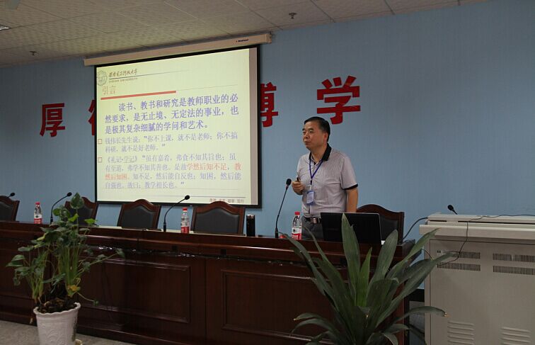 开幕式结束后,国家级教学名师刘三阳教授首先做了《读书·教书·研究》的报告,刘三阳教授引经据典、并结合自己三十多年的治学经历经验提出了一系列独到见解,刘教授的精彩报告深入浅出,不时引起听众的热烈掌声。
