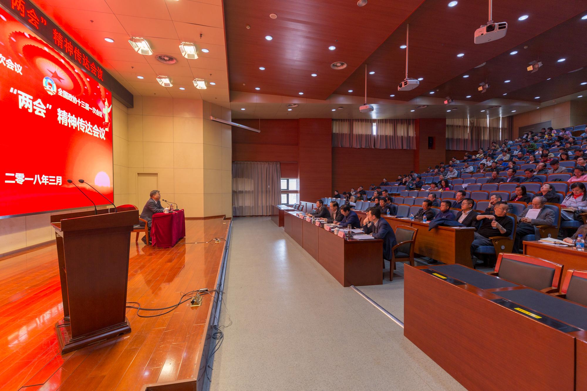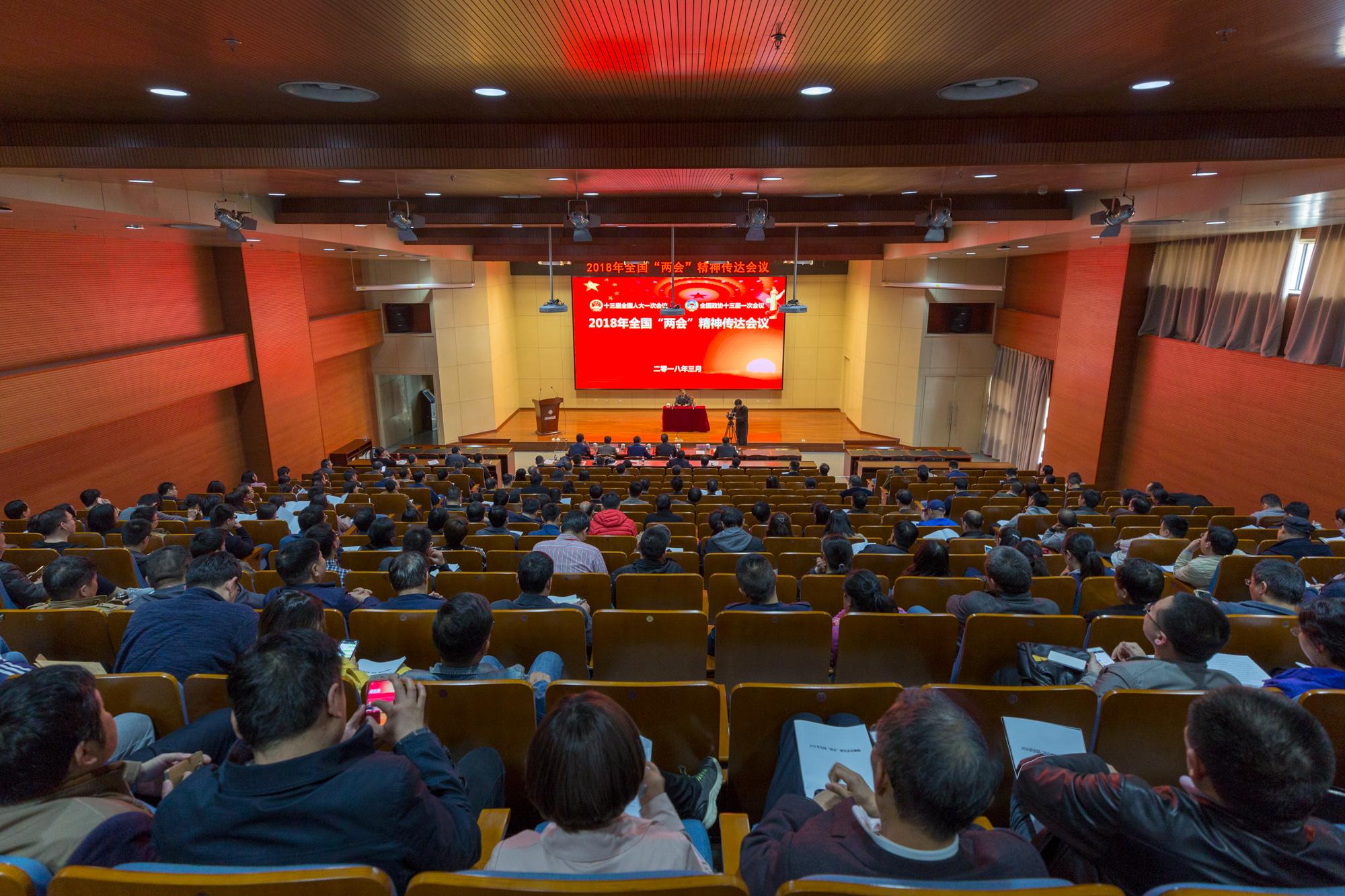 3月23日下午,学校在南校区办公楼210报告厅召开全国“两会”精神传达报告会。全国政协委员、刘三阳教授传达了十三届全国人大一次会议和全国政协十三届一次会议精神。校领导,处科级干部,各级人大代表、政协委员,教师代表,民主党派、侨联、知联会等统战团体负责人,“两课”教师,教职工党支部书记,全体辅导员等300余人参加了会议。会议由党委副书记、副校长任小龙主持。