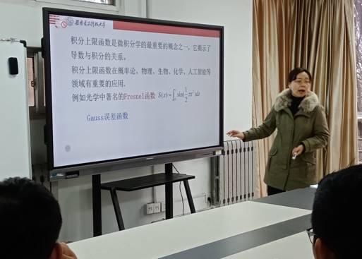 首先,老师跟同学们进行了简单且轻松的对话,调动同学们的积极性。紧接着,老师开始讲解今天的课程内容。第一部分是积分上限函数、原函数存在定理及定理的重要意义,在此基础上补充了其他定理。此外,老师通过实例增强同学们对定理的认识和定理。随后,老师帮助同学们梳理了相关定理,如:讲解了关于奇偶性、周期性、单调性等问题,同时结合这些特性选取了课后经典的例题以及自己设置了一些选择题,供同学们思考,解决同学们的困惑。