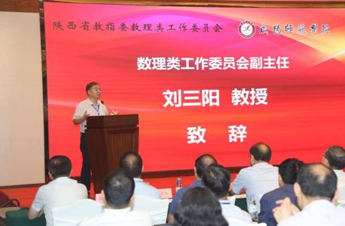 数理类工作委员会副主任、数学组组长刘三阳教授在开幕式上致辞。他讲到自去年省教指委成立以来,数理类专业工作委员会(数学组)就积极筹划相关活动,以期助推全省数学类专业的建设和发展。他指出:这次研讨会是我省历史上首次针对数学类专业建设举办的会议,得到全省高校数学院系的积极响应,必将对我省高校数学类一流专业和一流课程建设起到引领和推动作用。刘老师简要介绍了他提议召开本次会议的动因及筹备过程,并对省数理类工作委员会主任魏炳波院士、秘书长阮莹老师及咸阳师院的大力支持表示衷心感谢。