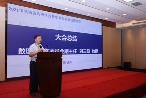 最后,刘三阳教授在闭幕式上做总结讲话,他说这次会议开得很成功,圆满完成了会议既定目标和任务,感谢会议承办方咸阳师范学院辛苦付出和周密安排。他指出,这次会议是一个良好的开端,教指委今后将继续围绕我省高校数学类专业建设、课程建设、师资队伍建设等主题进行调研,开展形式多样的交流培训活动,为我省高校数学类专业共同体的发展作出应有的贡献。