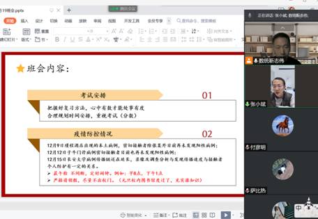 学院机关干部参与学生班会,讲解期末安排和防控措施
