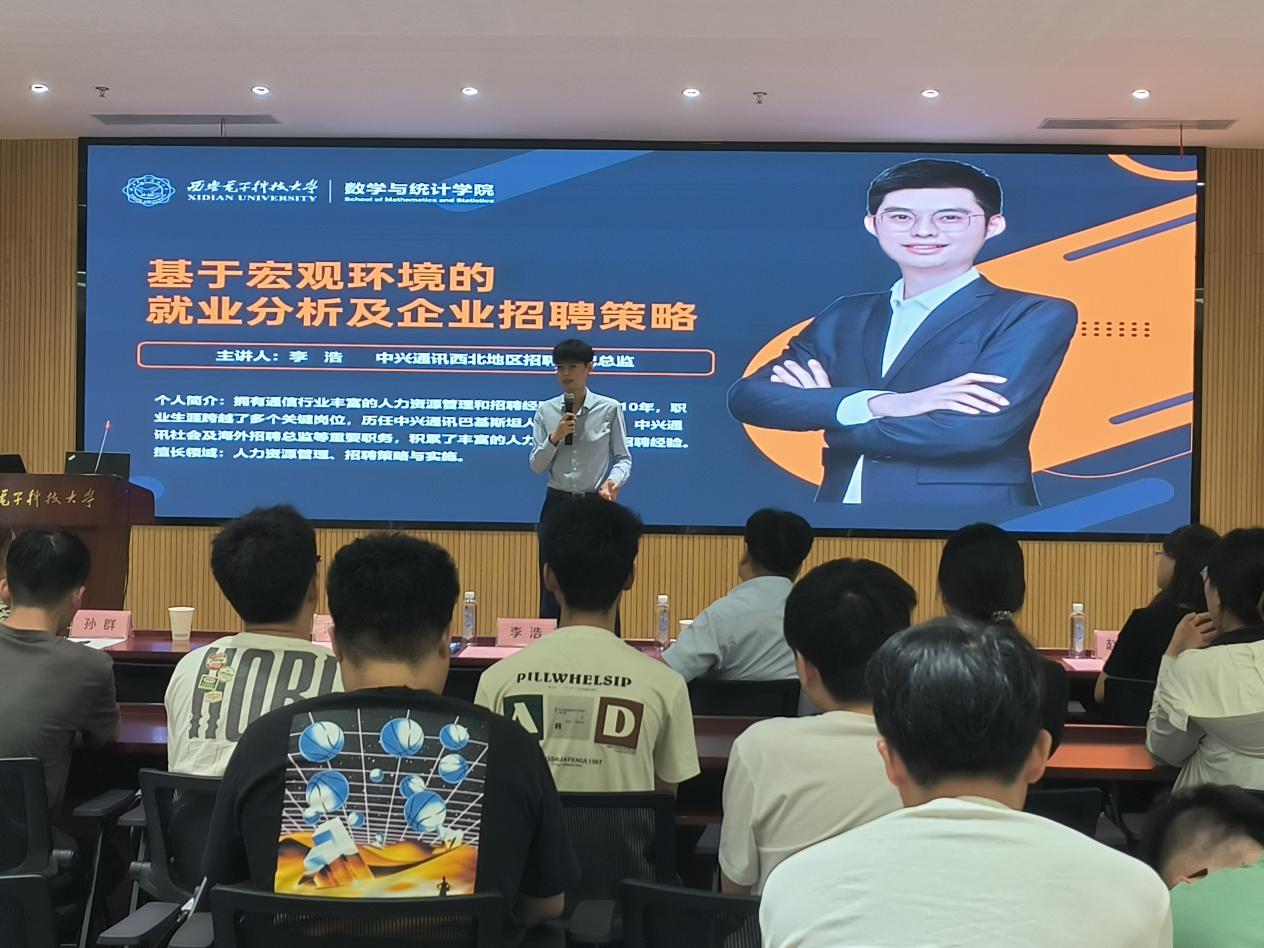 随后,李浩老师为同学做题为“基于宏观环境的就业分析及企业招聘策略”的报告,他以自身丰富的招聘经验和行业洞察,为同学们深入剖析了当前的就业形势和市场需求。并结合中兴通讯的招聘实例,详细讲解了求职过程中需要注意的各个环节,包括简历筛选、面试技巧、职业规划等。同时,他还就学生们关心的薪资待遇、发展前景等问题进行了详细解答。