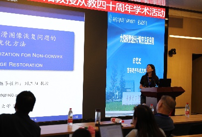 论坛期间,与会专家就当前应用数学的前沿热点问题和教学经验进行了深入交流和展示。焦红伟教授介绍了用于广义线性分式规划问题求解的全局优化算法;常小凯副教授分享了基于凸组合与大步长的原始对偶分裂算法的新范式;许文艳、尹小艳副教授分别展示了《解析几何》混合式教学改革和实对称矩阵标准形的示范教学;白艺光老师介绍了面向大规模图划分的计算方法及其应用;李昕艺老师分享了一种求解非凸非光滑图像恢复问题的单阶段优化算法;张哲辰、邓凌云博士分别介绍了基于全变分正则化的鲁棒张量补全算法和基于网络科学的进化计算方法。八场报告内容精彩纷呈,与会的专家学者们展示了最新的研究成果,现场讨论深入而热烈,充分体现了学术交流的深度和广度。