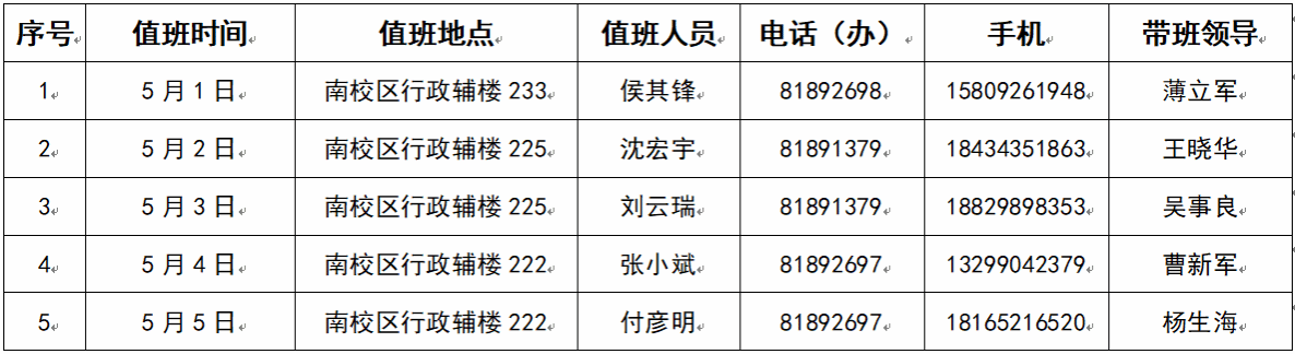 永利集团883042025年劳动节假期值班安排表