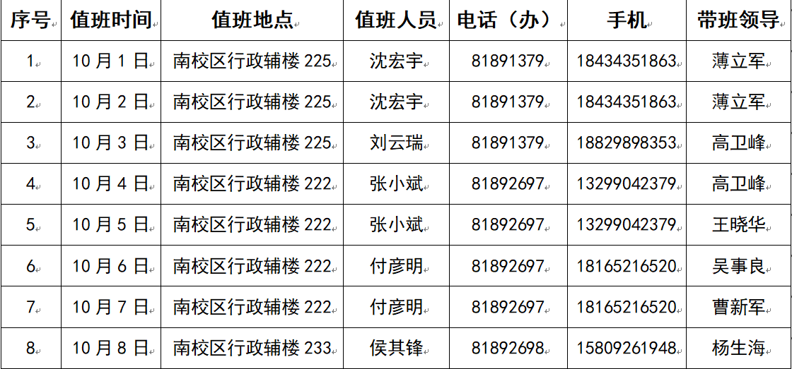 永利集团883042025年国庆节、中秋节假期值班安排表