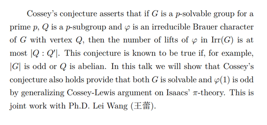 报告题目:The number of lifts of a Brauer character in asolvable group