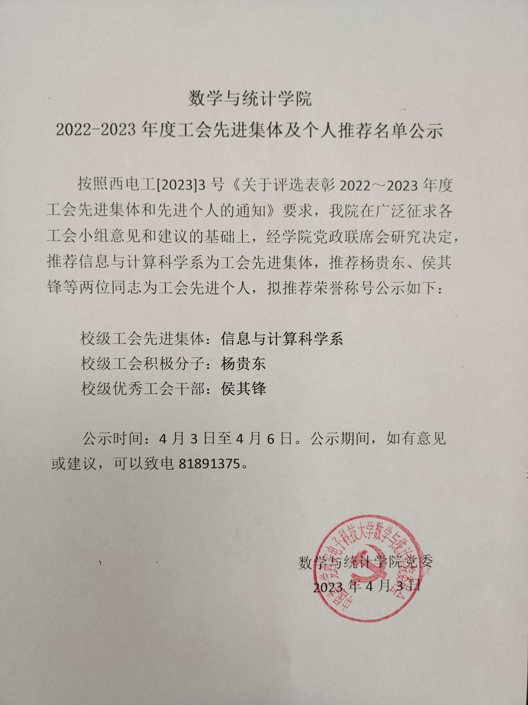 永利集团883042022-2023年度工会先进集体及个人推荐名单公示