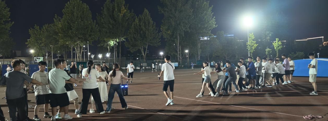 破冰活动主要由三个活动组成,分别是名字串串烧、跳大绳比赛、拔河对抗赛。在名字串串烧中,所有同学首先按照随机分组,将全班同学分为 10 组,每组每位同学依次进行名字接龙。通过这个游戏,同学们不仅能够快速地记住彼此的名字,还能够在轻松愉快的氛围中了解彼此的兴趣和个性。名字串串烧游戏结束后,全体同学以宿舍为单位,进行一分钟跳绳比赛。比赛不仅拉近了舍友之间的距离,并且能够让同学们进体验团队合作和体会团队精神。在挥洒汗水的同时,操场上也洋溢着同学们欢快的笑声。活动最后,拔河比赛如期举行。同学们以行政班级为单位进行拔河比赛,赛制为三局二胜,比赛过程异常精彩,场下啦啦队加油声此起彼伏,同学们满怀激情,奋力拼搏,为集体而战。