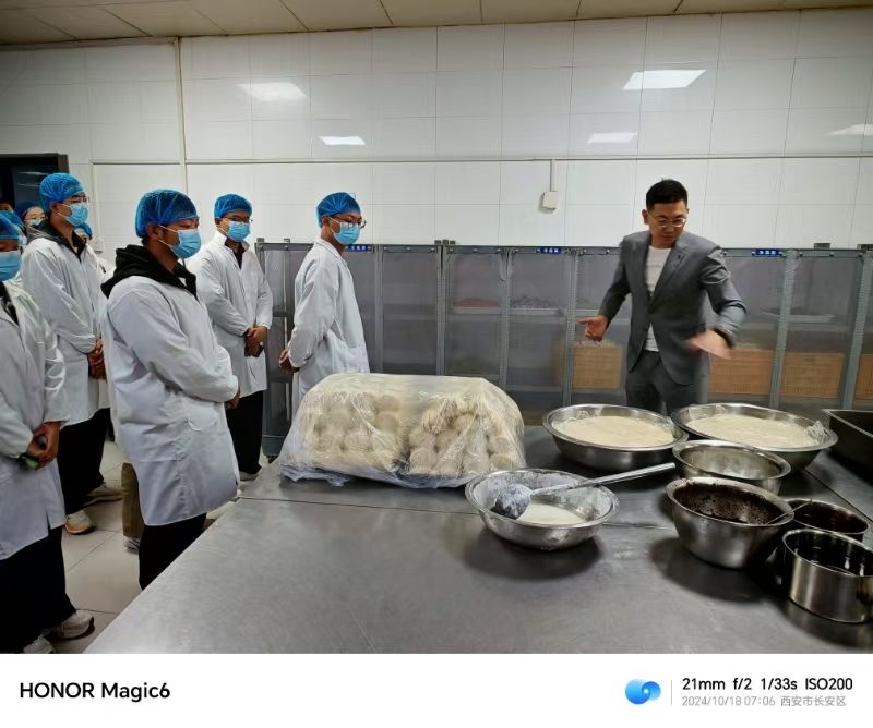 上午7:30,学校组织同学们前往中心厨房参观。这座厨房是南北校区提供米饭、馒头、面条等主食成品的重要加工场所。同学们深入实地穿着工作服装,经过风淋消毒进入加工区域,亲眼见证一个个馒头的制作出炉,以及大米从挑选、清洗、加工到最终烹饪的整个过程。参观过程中,大家还深入了解了烹饪时厨具的清洗维护等细节工作,亲身体验了现代化流水线作业和自动化技术带给食品加工的高效和便捷。