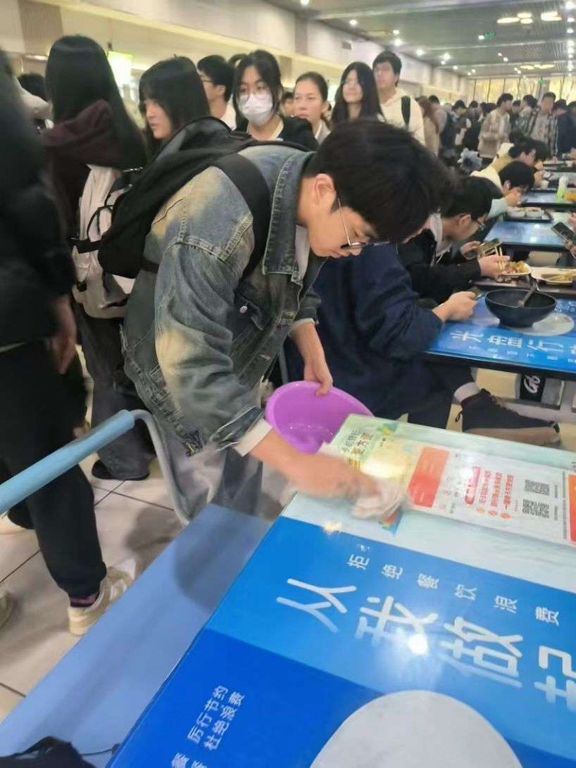 美好食光引导员岗位同样得到了学生们的积极响应。孙媛媛和杨书凡等同学热情地在餐厅内引导就餐人员有序排队,收集并反馈用餐建议,及时响应同学们的需求。同时,他们还及时提醒同学们在指定位置停放自行车和电动车,为营造良好的用餐环境贡献了自己的力量。