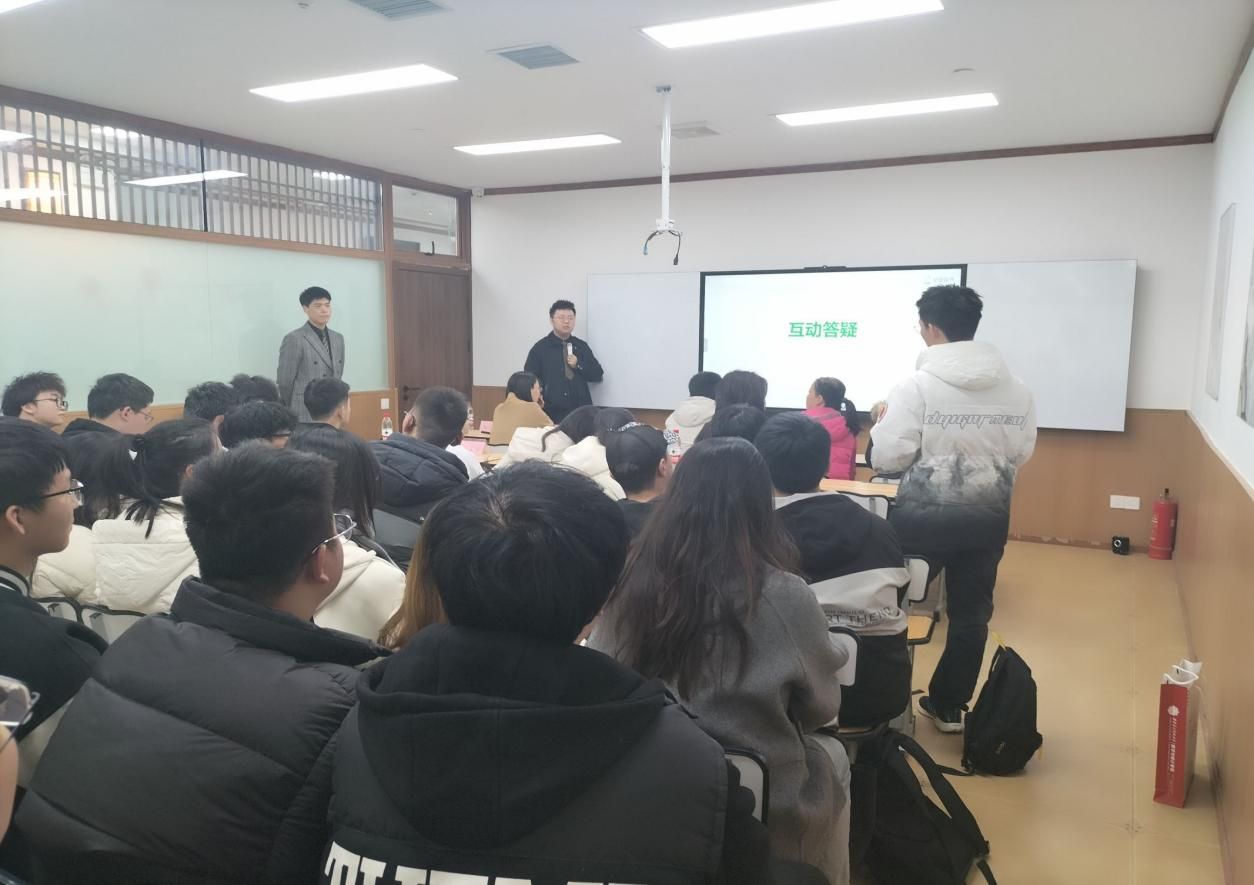 活动伊始,心田花开的教师团队热情接待并带领学生们参观了机构的各个部门,包括教学区、办公区等,了解企业的工作环境和企业文化。随后,心田花开西安分校校长谭振宇向师生介绍了机构的发展历程与现状、团队建设以及招聘岗位,希望有爱心、有志从事教育行业的同学们加入心田花开团队。靳志伟老师作为学院带队老师介绍了学院2025届本硕毕业生的情况,他表示,学院的学生生源好,综合素质高,可塑性强,希望通过此次实地参访,增强学生对职业场景的认知,了解岗位最前沿,为未来适应职场积累经验。为了更直观地感受心田花开的课堂教学,心田花开的老师为师生带来了一堂精彩的数学示范课,让学生认识到作为一名教师的魅力。在最后的互动答疑环节,学生们积极提问,问题涉及工作内容、薪资差异、带班安排、教学风格平衡及晋升路径等,心田花开的领导及老师逐一解答。