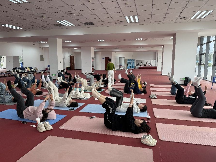 活动开始,边虹老师向同学们介绍了瑜伽的基本理念和呼吸技巧,通过理论讲解揭开瑜伽减压的“密码”,强调了其对于缓解压力和改善睡眠的积极作用。“呼吸是连接身体与意识的桥梁”,随后,老师现场示范并指导同学们从基础坐姿开始,逐步调整至肩颈舒展系列动作,同时感受气息在体内的流动节奏。针对学生群体常见的久坐问题,特别设计了脊柱延展、腰背放松等针对性训练,通过“猫式”、“山式站立”等经典体式,帮助大家逐步打开紧绷的身体,缓解因长时间伏案学习带来的不适。期间,老师耐心地纠正同学们的姿势,并鼓励大家专注于当下的感受,放下杂念,全身心地投入到练习中。课程后半程进入冥想环节,在温和平缓的引导声中,同学们闭目平躺,通过“身体扫描法”逐层释放压力,让不少同学首次体验到“与自我对话”的奇妙感受。