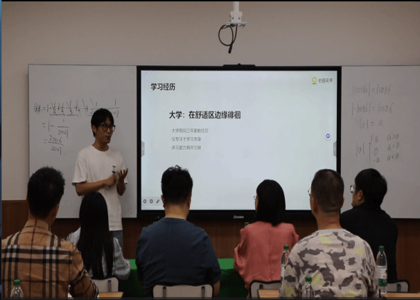 紧接着,心田花开教师、学院2024届毕业生霍金豪结合自身经历,分享了从校园到职场的蜕变,谈及职业选择。他坦言知识储备是重要起点,对教育的热爱是关键点,于是在毕业时坚定选择教育行业。“初入职场时虽经历过迷茫与挫折,但正是这段历练让我更加明确了自己的发展方向,最终通过主动调整,找到了更适合自己的发展平台”。他以自己的亲身经历为学弟学妹们上了一堂就业课,为他们提供了宝贵的就业参考。