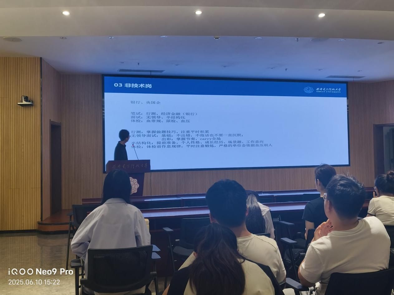 此次分享会内容丰富、指导性强,不仅帮助同学们深入了解了不同行业的就业流程与准备要点,也为大家提供了实用的求职建议与经验指导。通过两位同学的真诚分享,参会同学进一步明确了就业方向,增强了求职信心。学院将继续以学生需求为导向,持续开展多形式、分领域的就业指导活动,搭建经验交流平台,助力同学们提升职业素养,实现更加充分和高质量的就业。
