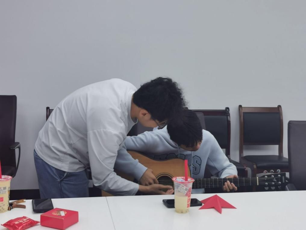 吉他轻拨,歌声飞扬,一首周杰伦的《晴天》,引起同学们的共鸣,吉他声清新悠扬,你弹我唱,形成和谐而圆满的画面;《我和我的祖国》深情磅礴,同学们围坐合唱,点燃了同学们对祖国的依恋,也唱响对祖国的祝福。这场即兴音乐会,是情感的释放,更是校园生活中人文交融的生动写照,展现了数理学子的多元风采。