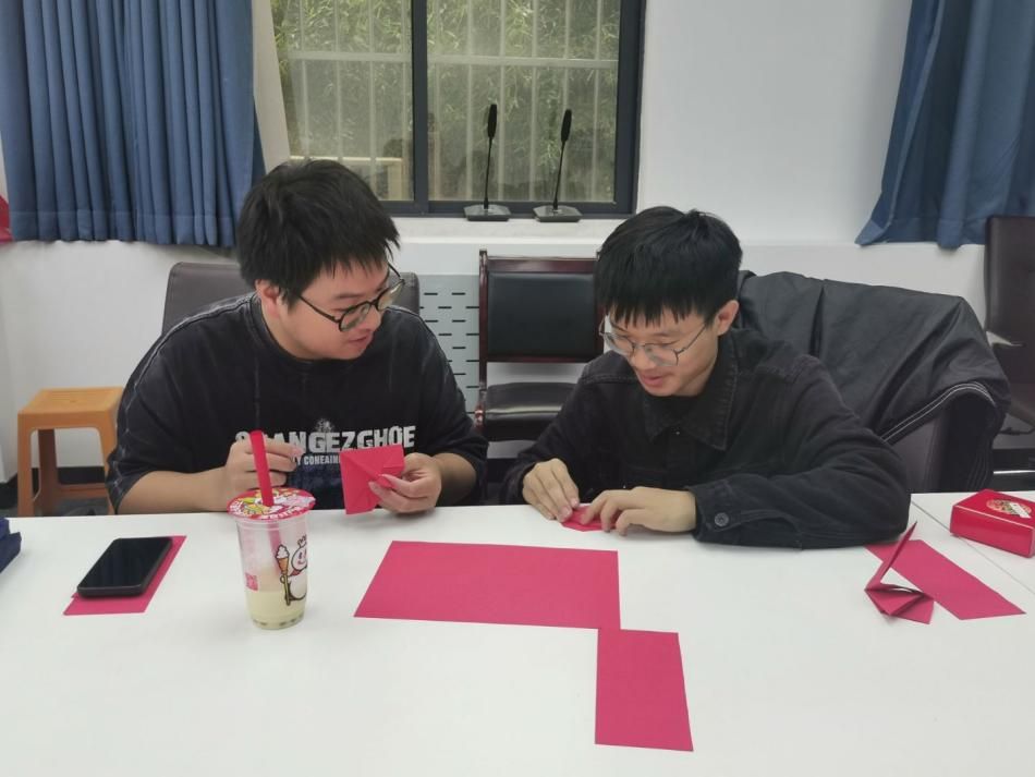 巧手剪星,数理融情,活动以“剪纸映初心”开场。同学们用红纸剪出五角星,将几何知识融入手工实践。黄金分割、对称结构、精准角度,既是数学的严谨,也是艺术的表达。“每一剪都像在解一道题,而答案是爱国的赤诚。”同学们在动手中学思践悟,让理性思维与家国情感同频共振。