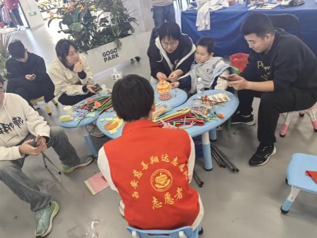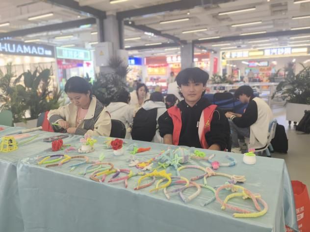为了让更多人感受手作的魅力,活动还特别设置了互动体验环节。志愿者们邀请路人亲手参与扭扭棒制作,并耐心指导制作技巧。许多参与者在志愿者的帮助下完成了属于自己的“小作品”,当他们举起自己的手工艺品时,脸上洋溢的笑容正是这场活动最温暖的风景。