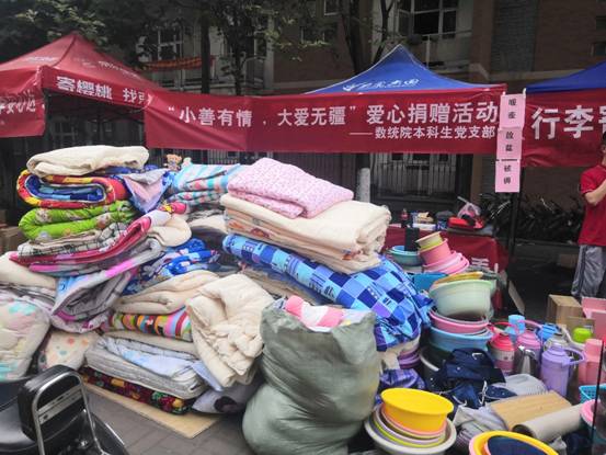 其他院系毕业生们,得知捐赠活动后,也纷纷加入到捐赠活动中来,他们将被褥、水盆、暖壶清洗干净,精心打包,前往外场捐赠。一时间,爱的暖流汇聚西电校园:一床床简简单单的被子,一个个大大小小的水盆,一排排五颜六色的暖壶,都承载着毕业生学子们对老人的关爱,尊老敬老爱老是中华民族的传统美德,捐赠活动充分体现了大学生宽广的爱心,老吾老以及人之老,他们的无私行为为这个美丽的毕业季谱写了一篇篇爱的乐章:小善有情献爱心,大爱无疆书别离,他们赋予了这个毕业季更加动人的场面和更加非凡的意义!
