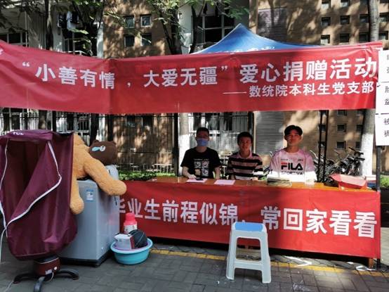 勿以善小而不为,捐助虽然是微小的,但是爱心是无价的。雨果有言“人生是花,而爱是花蜜。”数学不统计学院本科生党支部在感恩中共同播撒爱心,一起弘扬中华传统美德,授人玫瑰,手留余香,让我们一起,为爱加油!祝各位毕业生健康快乐,前途似锦!祝所有老人健康幸福,安享晚年。(通讯员:付媛媛)