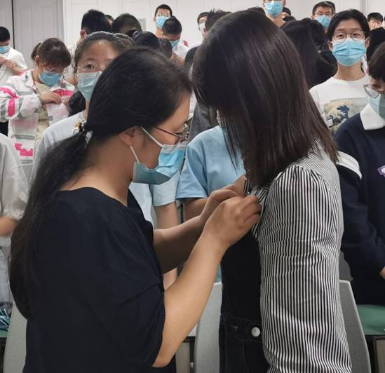 9月5日,我校2021级新生迎来了开学典礼,由于疫情防控,为避免人员聚集,我校采用线上与线下结合的方式进行,在分会场,学院王佩副书记为新生佩戴校徽,在两个多小时的开学典礼后,王璐同学激动地说:“我为自己能进入这样一所有着红色基因的学校二自豪,我一定不负众望,做最好的自己,做最得力的西电人”。