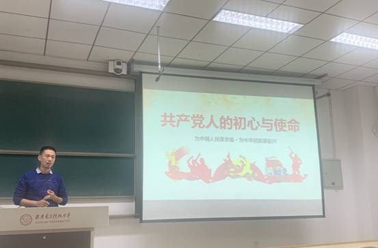 靳志伟先从永利集团88304党委发展党员工作流程展开,让同学们了解到成为一名党员的大致流程与成为一名合格党员的不易。随后播放了一段有关抗美援朝和一段有关中共党员李白的短视频,使同学们认识到了中国共产党的先进性与党员的无私奉献精神。随后,又从“走进共产党人初心”、“新时代党的历史使命”、“中国共产党最有理由自信”及“从严治党,开创未来”等方面解读了“初心与使命”的深刻内涵。中国共产党的初心和使命,就是为中国人民谋幸福,为中华民族谋复兴;不断增进人民福祉、实现人民幸福,是党的初心使命的集中体现与现实反映。