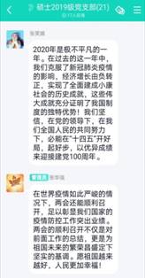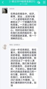 张凯凯说,“在过去的一年里,我们克服了突如其来的新冠疫情,完成了全面建成小康社会的重要任务,在党的领导下我们克服困难完成挑战,这充分体现了党领导一切的正确性”。“第十三届全国人民代表大会第四次会议今日在北京顺利开幕,回望过去,2020年的坎坷崎岖并没有阻挡我们前进的脚步,党中央始终坚持人民至上、生命至上的原则,全面部署防控策略,稳住了经济基本盘。展望未来,2021我们要全面贯彻党的十九大和十九届二中、三中、四中、五中全会精神,稳中求进,再创辉煌。作为新时代青年,我们义不容辞肩负重任,增强自身本领,为实现2021部署目标以及民族复兴贡献自己的力量!”孟雨欣说道。