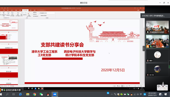 (通讯员:李泽宇)为搭建基层党支部交流平台,加强基层党支部建设,增强学生党支部的凝聚力和战斗力,2020年12月5日21时,永利集团88304党支部与清华大学工业工程系工8党支部通过腾讯视频会议的方式共同举办读书分享会活动。此次活动旨在加强支部建设,推进“两学一做”学习教育常态化制度化,落实意识形态工作责任制。第一次共建活动由清华大学工业工程系工8党支部书记徐军书记主持,清华大学工业工程系工8党支部全体党员、永利集团88304党支部全体党员及发展对象参加。