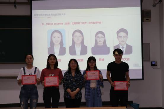 获得“优秀党务工作者”称号的同学有:高雅倩、吴世雅、黄琦、郑文吉