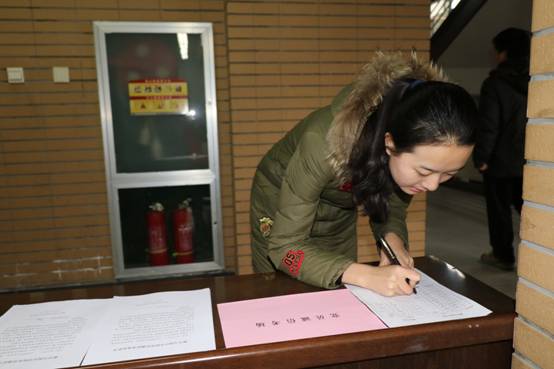 8:30不到,已经有大半同学来到考场外,他们将书包放置在指定位置,在考场记录表上庄严签字,并在《永利集团88304党员诚信考试承诺书》上郑重签上自己的名字,随后使用金属探测仪自检后进入考场,他们的眼神是坚毅坚定的,神态是自信满满的,连他们的步伐给人的感觉都是轻盈质感的。