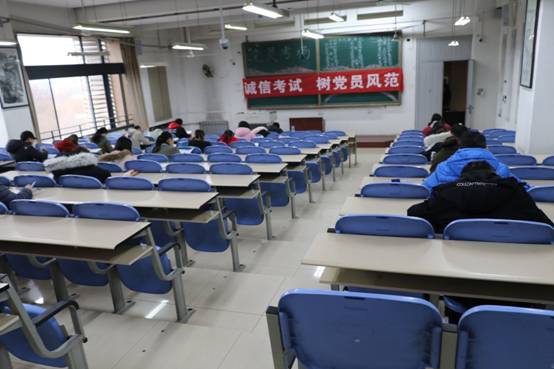 看,草稿纸也统一上交了,并且都签有自己的姓名!考试结束,同学们还帮老师取下横幅,擦掉黑板,帮老师将桌椅放回原位,关掉教室电源。石加坤同学边帮老师收拾东西边说:“这种形式的考试,第一次遇到,感觉很新奇,整个过程感觉很好,大家很安静,氛围很好”,孙怡如很自信地说道:“党员考场安排是个很新颖的考试安排方法,考场氛围也很好,整个过程都很安静,诚信考场的安排应该也是一种很大胆的尝试,考验了我们党员强大的自觉性和自制力,我们经得起考验”,陈琪同学说:“进考场之后,黑板上的红色标语让我觉得很有仪式感,在我看来,无人监考考场和平时没有太大区别,党员同学们还是和从前一样认认真真答题,唯一不同的是多了一种信任感,这种信任感是组织赋予我们的,让我觉得自己更应该发挥好党员模范作用,更加严格要求自己,我很喜欢这种感觉,”朱琨接着话茬说:“诚信考试形式是对党员的考验,在考试过程中每个人都专心致志,并且保持考场的安静以及严肃,党员诚信考场是检验我们的自觉性以及原则性的战场,身为大学生党员,我们应该在同学中起到积极的带头作用”。