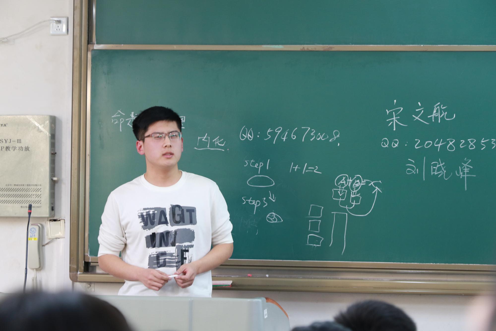 我们先通过一个《你为什么不努力》的视频短篇让大家思考反省自己入学的这段时间,过的是否充实,是否有意义。由于各种原因,最终与老师、学长商量下,我们决定采取让老师抽学号的方式让同学上讲台说出自己面临大学生活的感受以及针对学习的困惑。最后还有几位没有抽到的同学也很积极主动的上台去表达自己。与此同时,班主任和学长们很细心的记录了每个同学提出的问题并做出回应。听了学长们的精彩解答,有醍醐灌顶之感,真的是“听君一席话,胜读十年书”,给未来的大学生活指明了方向,让我们可以少走许多弯路。学长告诉我们如何锻炼自己的思维,哪一个出版社值得信赖,哪一些书对学习专业课有用等等许多很有用的东西,并且留下了他们自己的联系方式以便与大家交流。最后班主任对今天的整个班会做了简单总结以及升华了学长学姐们所讲的内容,让我们不在迷茫中碌碌无为的荒废美好的时光。