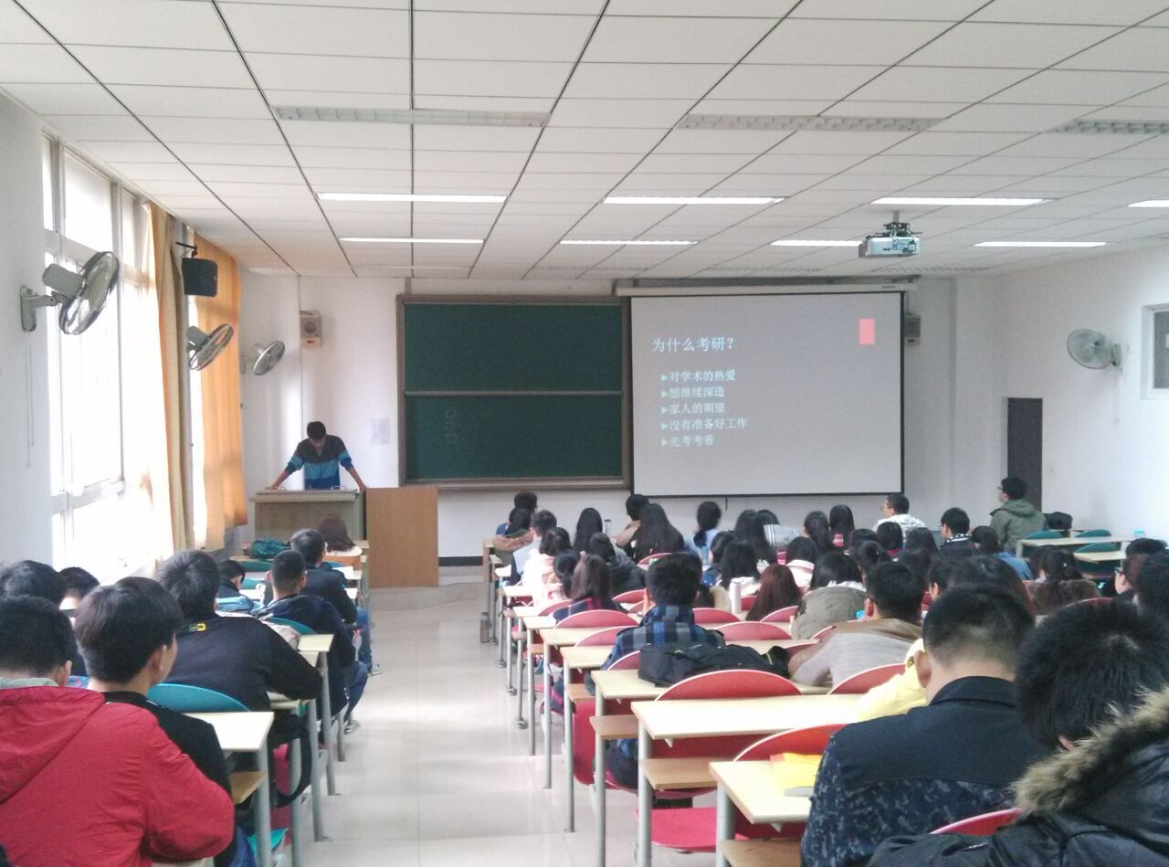 2016年3月24日,我院在信远一区219举办2016届优秀毕业生巡回报告会,此次报告会共有6位2016届毕业生参与,分3个场次为低年级同学传授学习经验。2016届毕业生高阳、靳瑾和2013级全体同学参加了此次活动。