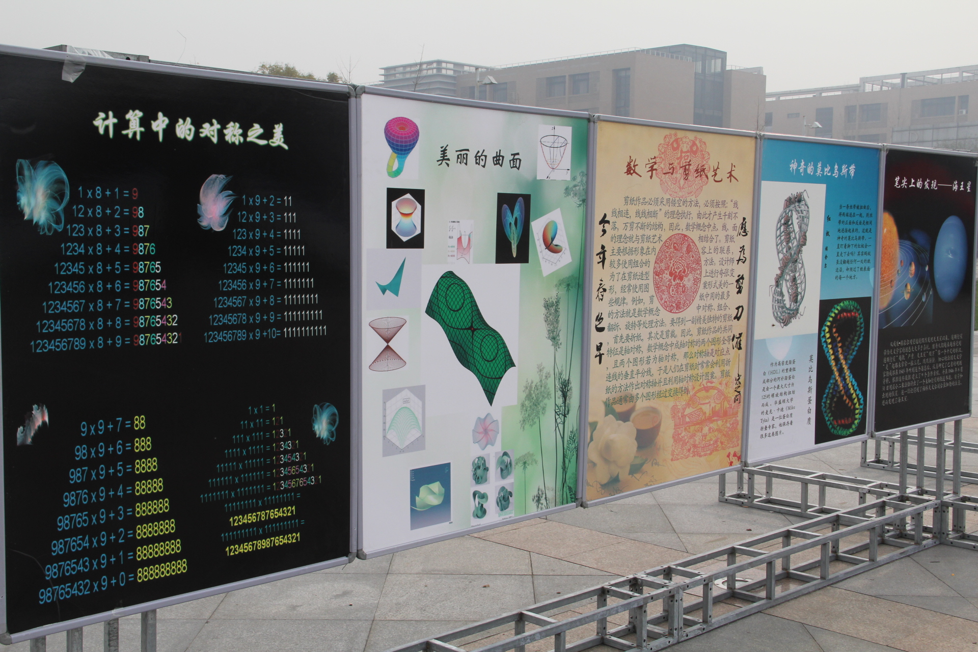 2015年11月27至30日,我院以“感受数学之美,领悟数学之用,分享数学之趣”为主题举行了数学文化展览活动,此次展览是我院“数学巡礼月”系列活动之一。展览分数学之美、数学之用、数学之趣以及数学人物、数学轶事和数学趣味游戏6个展区,我校师生近两千人次参与了本次活动。
