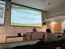 此次人工智能国际访学AIIA项目包括计算机科学、人工智能、数学等方向的教授和专家主题报告,包括:人工智能和机器学习、计算机视觉、自然语言处理、数据科学、AI应用、信息安全与软件工程等。在阿尔伯塔大学的精心安排下,共有十余位教授、工程师、博士为我们带来了20场与人工智能相关的讲座。第一场讲座是由Dr. Mario Nascimento带来的《Opening Lecture :Artificial Intelligence @ UAlberta》,他对阿尔伯塔大学的人工智能研究发展方面状况的介绍,引入了一些AI的基础知识,正式开启了我们在人工智能方面的学习。博士生Yi Wan带来的题为《Reinforcement Learning》的强化学习讲座,带我们了解有关强化学习的知识的同时也介绍了他步入人工智能领域的历程;Dillam为我们介绍了物联网行业的发展、AI在物联网中的应用等等,他的报告题目为《Introduction to the Internet of Things and Real Application》;教授Greg Kondrak及他的学生为我们带来了名为《Introduction to Natural Language Processing》的报告,为我们揭示了语音识别技术的奥秘及人工智能技术在语音识别领域的应用;Dr. Bin Zheng带来了名为《AI Applications in Surgery》的报告,通过展示一系列实例让我们见识到人工智能技术在外科手术中能发挥的巨大作用;Dr. Lihang Ying为我们带来了题为《Deep Learning》《Multimedia》的两个报告,讲解了LSTM(Long Short Term Memory)与RNN(Recurrent Neural Network)的优与劣,介绍了Q矩阵算法在图像识别、轮廓提取中的应用;博士生Tian Liang为我们带来了名为《AI Application in Power Systems》的报告,展现了人工智能技术如何被应用于电力系统;并向我们介绍了有关区块链Blockchain的运作原理;Dr. Bin Han作了题为《Application of Wavelet Theory in Image Processing》的报告,向我们介绍了小波分析在图像修复中的作用;Dr. Benjamin Tucker为我们带来了《Machine Learning and Conversational Speech》,介绍了人工智能技术在语音识别领域的作用以及给发音障碍者带来的帮助;Dr. Yau Shu Wong带来了题为《Data Mining》的报告,讲解了相关算法;助理教授、精神病学博士Dr. Bo Cao的《Machine Learning and Psychiatry》报告,带我们了解了几种常见的精神疾病如精神分裂症、抑郁症、躁狂症等,展现了患病者的大脑发生的变化,以及机器学习在精神病学方面的应用;Shi Jin的《Cloud Computing》为我们介绍了SHA256加密算法,向我们展现了云计算的基本原理,并为我们现场展示了如何进行服务器租赁以及三种云:Private,Public及Hybrid之间的区别与联系。丰富的报告让我们对这些领域的知识及应用产生了浓厚兴趣,对自己专业的理解更为深刻,清晰了解专业的应用方向及应用领域。