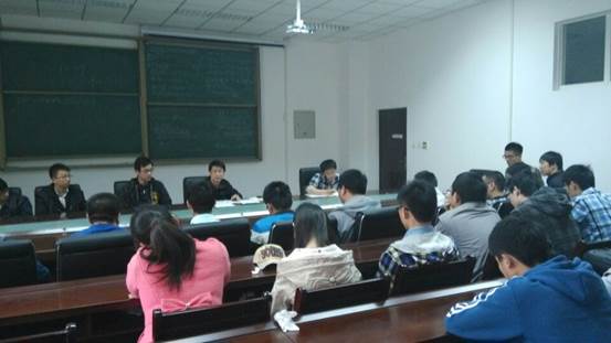 3月17日下午4点,我院在信远二区206召开2014届本科毕业生就业工作推进会。院党委副书记房亮老师、毕业班辅导员靳志伟老师及需要就业的同学参加了会议。