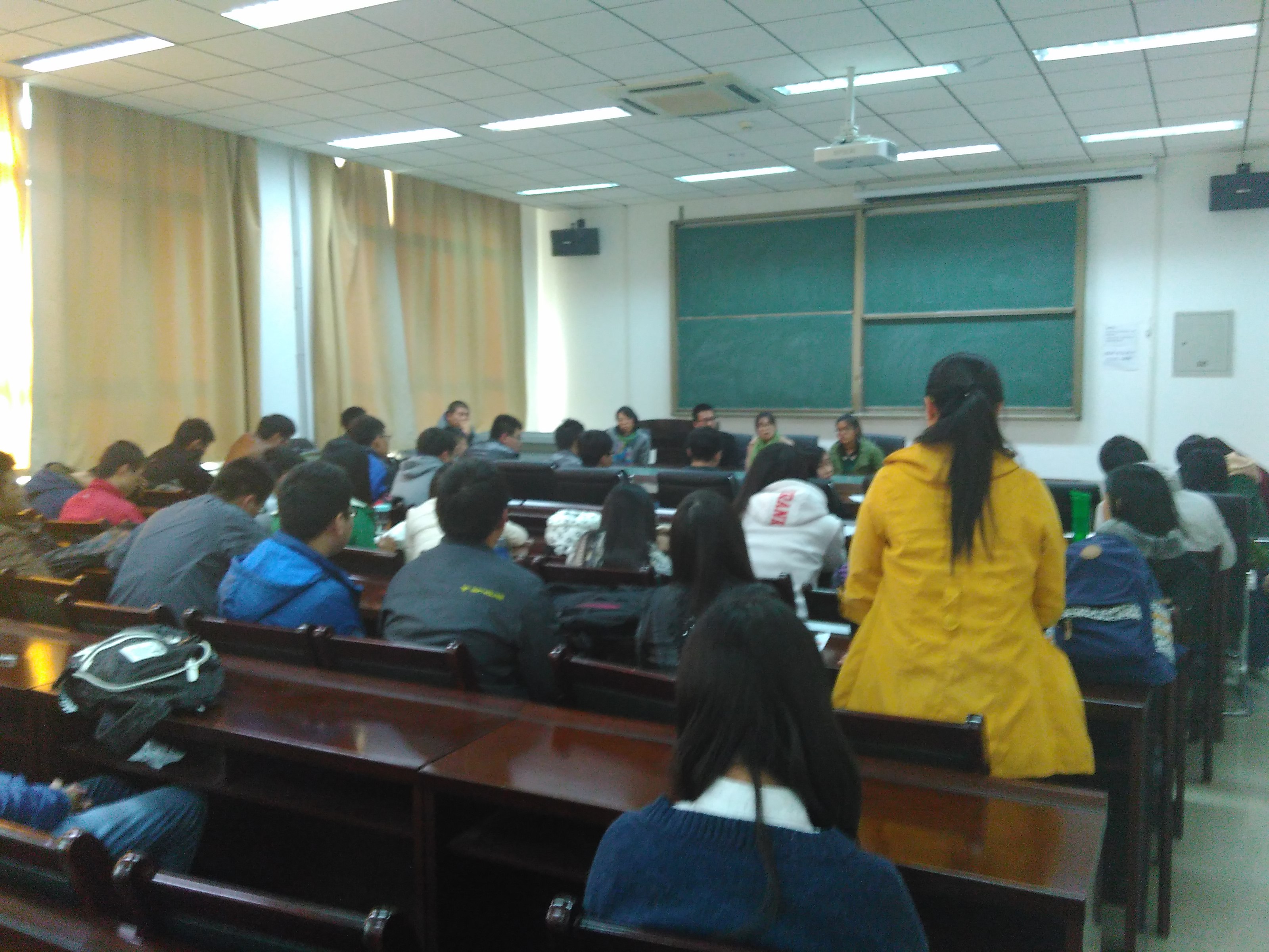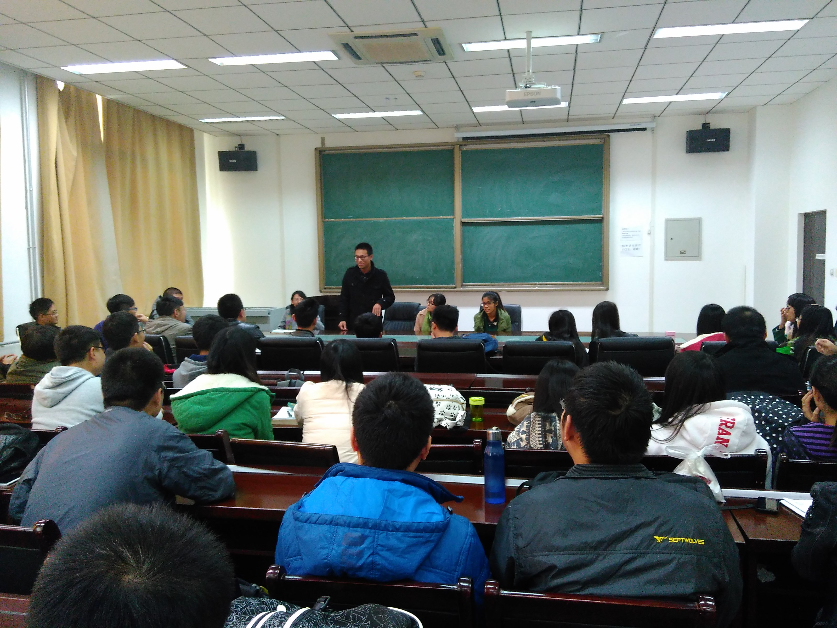 首先,是三位研究生学长学姐分享自己的考研经历。前两位学长讲述了自己考研的时间安排,复习方式,他们很细致地讲述了自己当初考研的点点滴滴,甚至是当时用的参考书,练习题都与同学们做了分享。而后是一名学姐发言,她补充了前面两位学长学姐没有说到的细节,强调了几点考研复习中容易出现的问题,而且就专业课问题为同学们做了很详细的说明。之后,同学们也就自己在复习过程中出现的问题,向学长学姐们作了咨询,学长学姐们也做了一一解答。