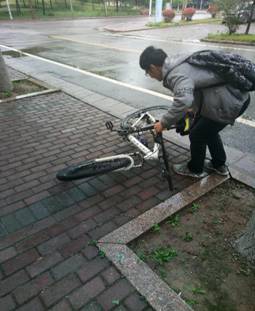 代雅君、曹宗胜同学、陈浪同学提出“美丽校园”的口号,号召大家自觉地针对校园中自行车的杂乱摆放问题有所作为,致力于实现校园的美丽与卫生。