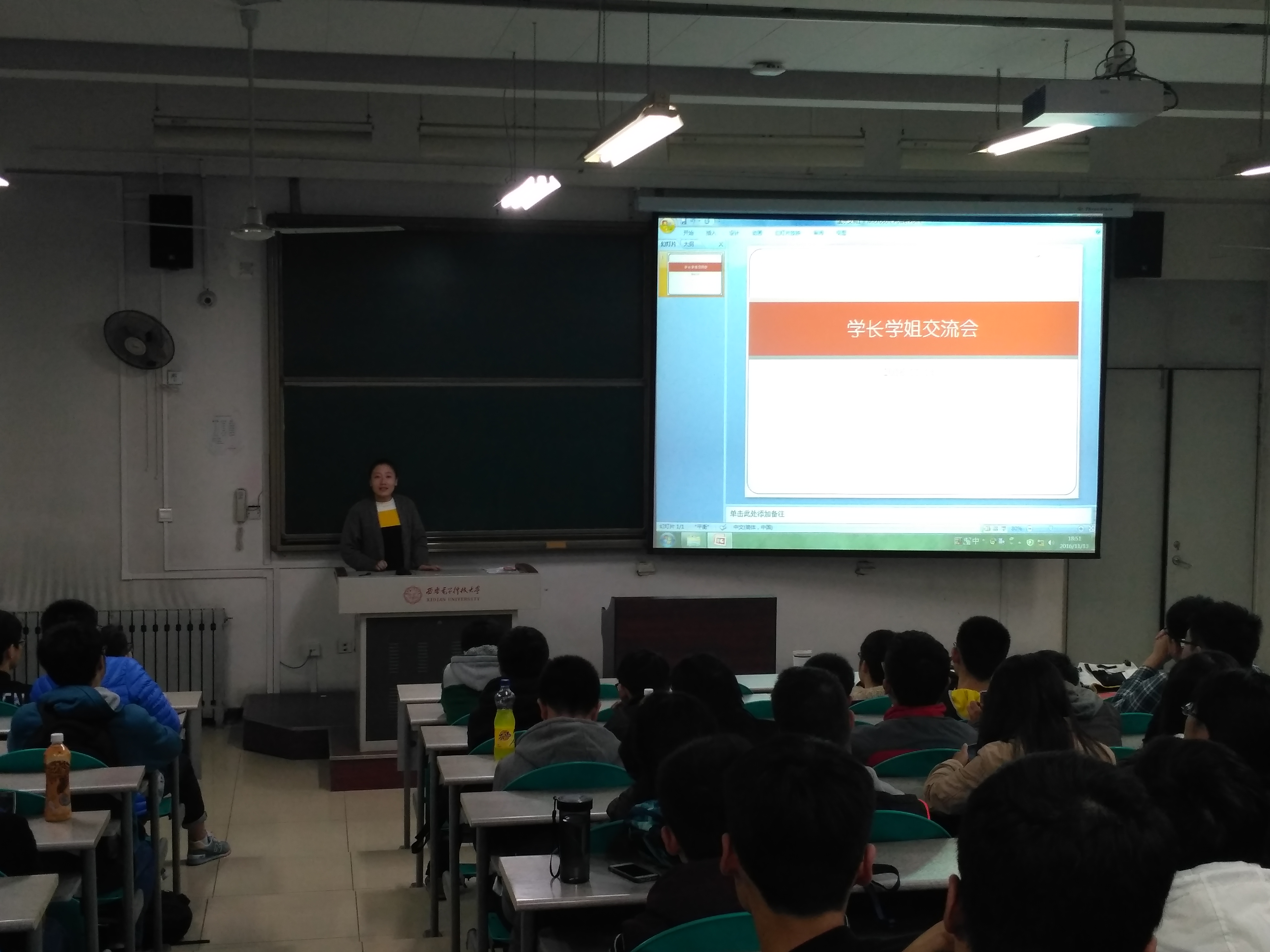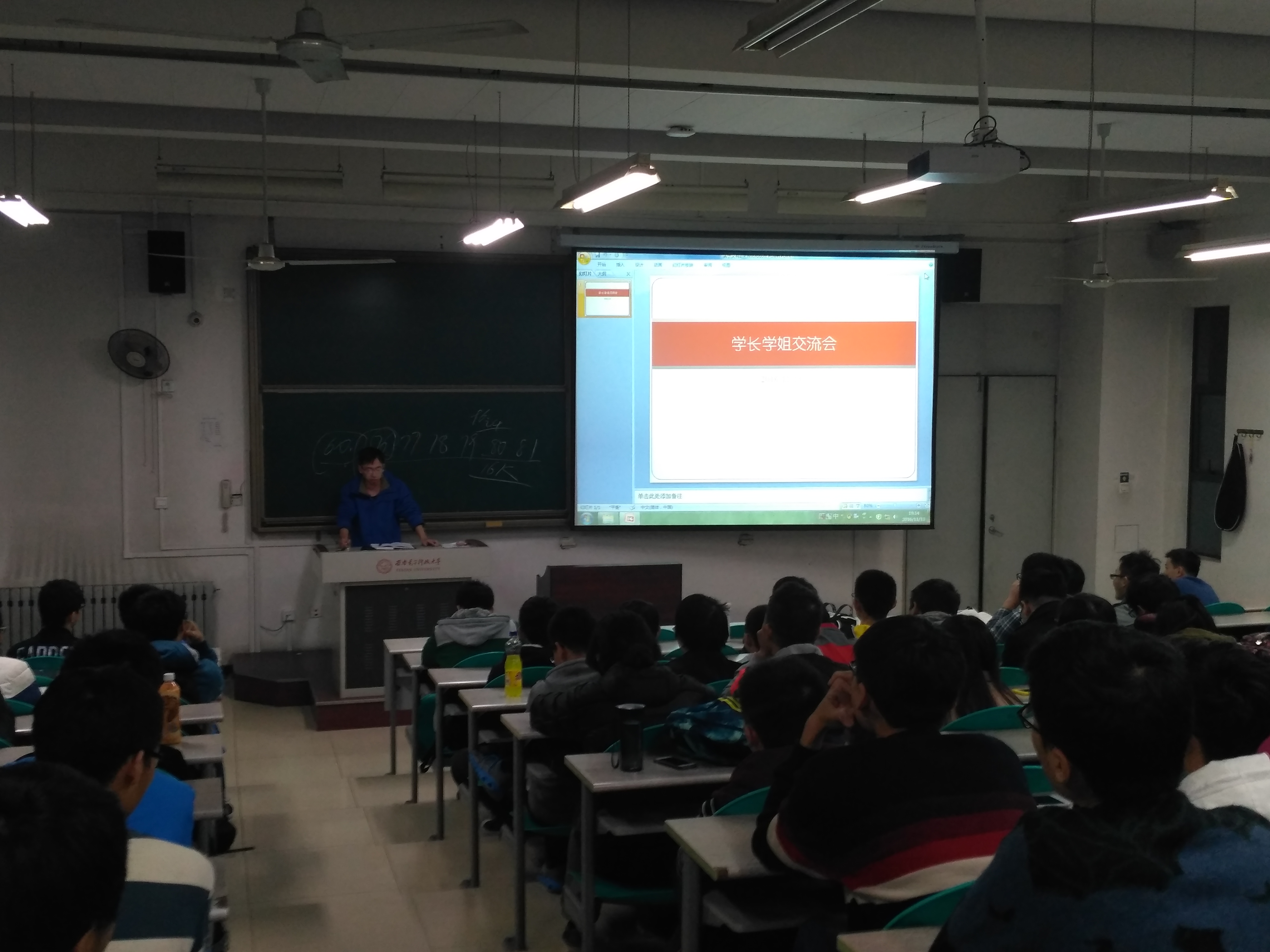 2016年11月13日晚6点,我院在教学楼B楼316教室举办优秀学长学姐学习经验交流会,由已被知名互联网公司录用的优秀研究生学长学姐做交流报告,120余名同学参加了本次交流会。