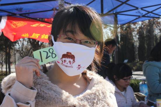 此次口罩设计大赛分两个阶段,首先参与活动的同学在12月3日活动外场报名领取编号和免费的口罩,并当场即兴发挥创作,在口罩上画出属于自己独特的图案。所有作品由工作人员拍照后经过挑选于12月4日进行大众投票选出优胜者并颁发奖品。
