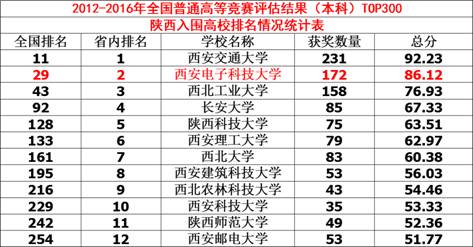 2017年12月14日,中国高等教育学会《高校竞赛评估与管理体系研究》预发布《中国高校创新人才培养暨学科竞赛评估结果》。学科竞赛评估以教育部2007年、2008年和2010年发布的大学生竞赛资助项目为主要依据,共筛选了包括全国大学生数学建模竞赛的19个竞赛项目纳入排行(见附件3)。我校在全国名列第29,在陕西省高校名列第2。