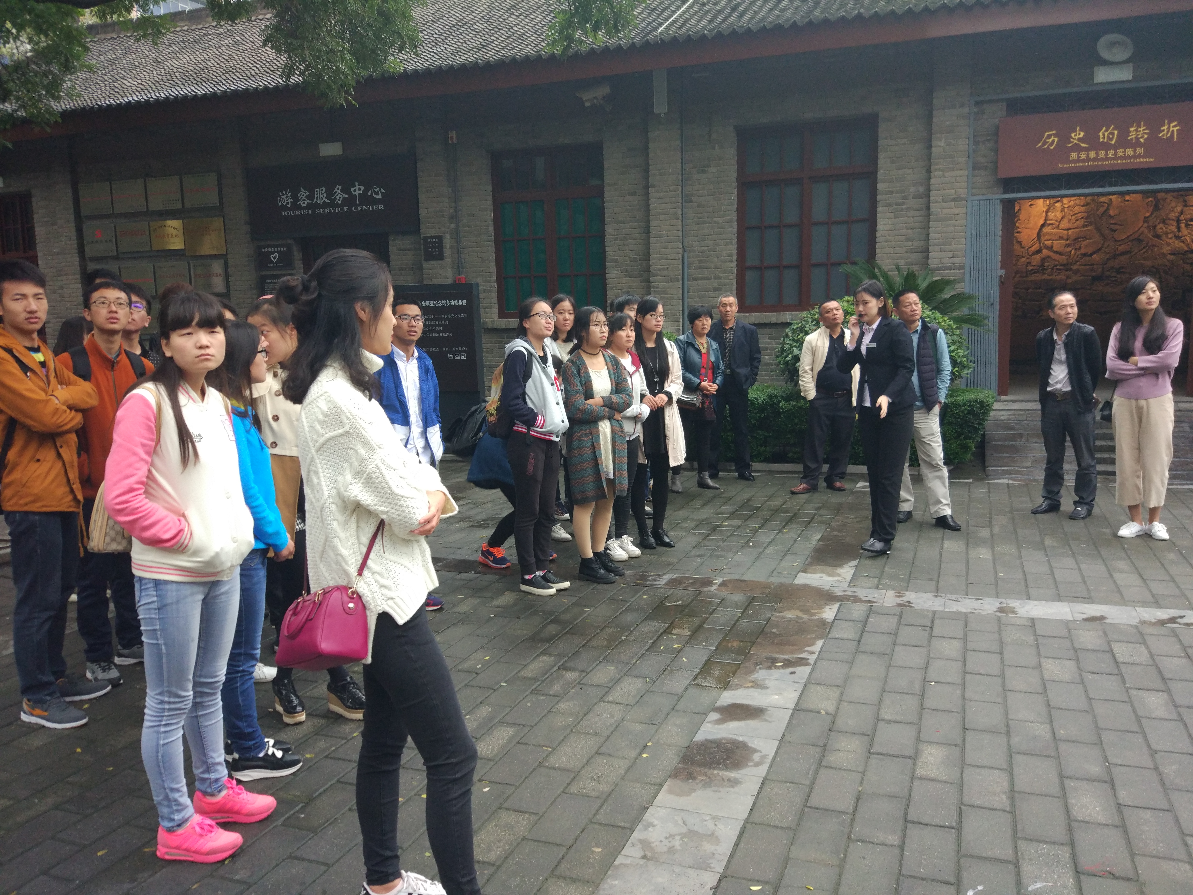 当日清晨,秋风瑟瑟,同学们从学校出发,前往位于西安城内的西安事变纪念馆参观。在讲解员的带领和生动讲解下,同学们先后参观了《历史的转折—西安事变史实陈列》和《赤诚爱国无悔情—张学良将军生平陈列》等专题陈列。同学们仔细观看了有关西安事变各种照片、实物,对西安事变的起因、经过、结果以及这段历史的背景和重要意义有了直观和深刻的认识,对中国共产党以及张学良和杨虎城在中华民族生死存亡的危难时刻展现的远见卓识和爱国情操表示由衷的赞叹。