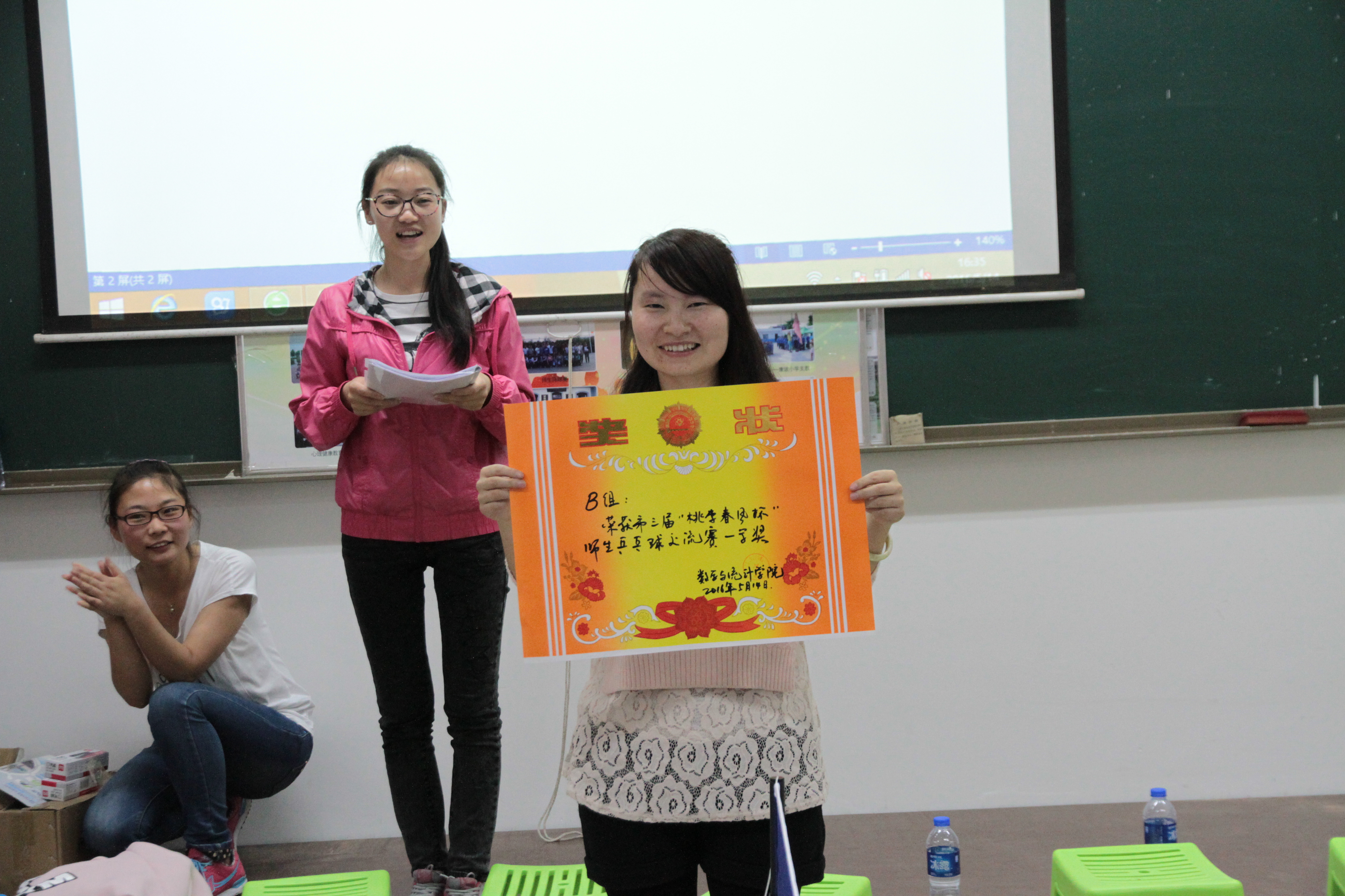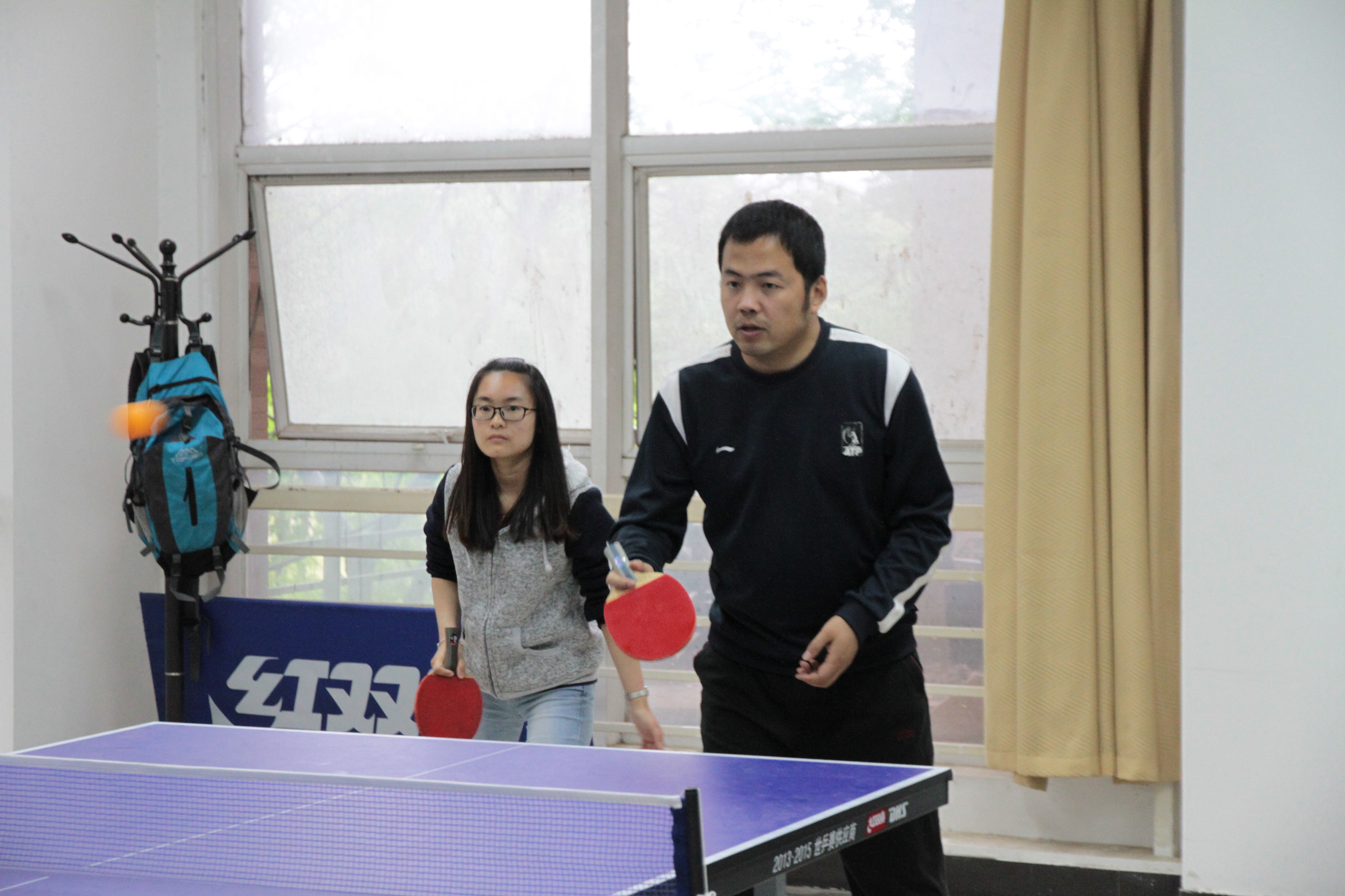 5月14日下午两点比赛正式开幕,恶劣的天气并没有挡住大家运动的心,每位参赛选手都用饱满的热情的参加了比赛。比赛以男单、女单、男双、女双、混双赛制采取抽签式进行,分成A,B两组。在主持人宣读完比赛规则后,紧张的比赛就正式开始了。首先进行的是各个小组赛的男单,男同胞们每个人都集中精神,奋力拼搏,展示了他们精湛娴熟的技巧;女同胞们也毫不逊色,一个个都身怀绝技,实力超强;在双打比赛中,老师与学生们打成一片,在这一刻,没有师生,只有队友和对手,师生间的氛围温暖融洽又紧张激烈,现场观众不时为选手们一个个绝妙的防守和扣杀而欢呼,更是将现场的氛围带动得活泼热烈,最终第二小队以微弱的优势赢得了第一。在经历了激烈而又精彩的比赛之后,研究生会为参赛选手颁发了奖状和奖品并合影留念。